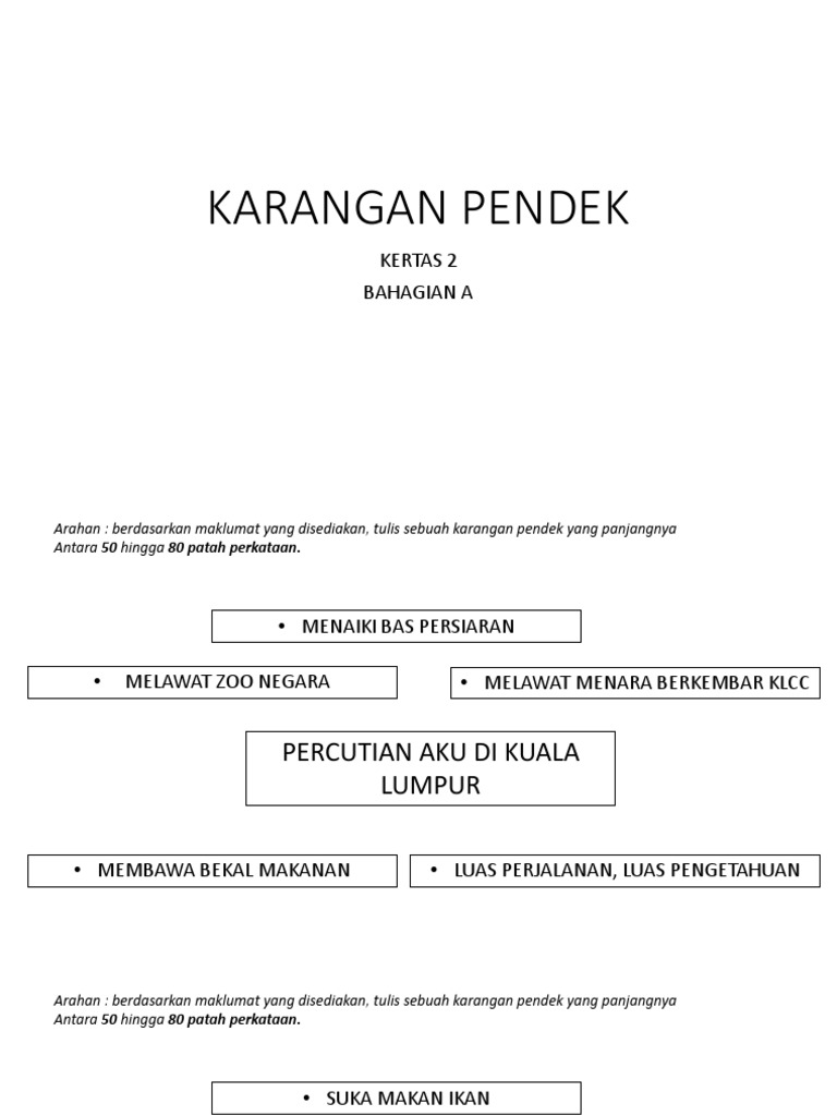 Panduan Menulis Karangan Pendek. Berdasarkan maklumat yang disediakan tulis sebuah karangan pendek yang panjangnya antara 50 hingga 80 patah perkataan. 2182021 Contoh karangan cemerlang bahasa melayu spm 3.
